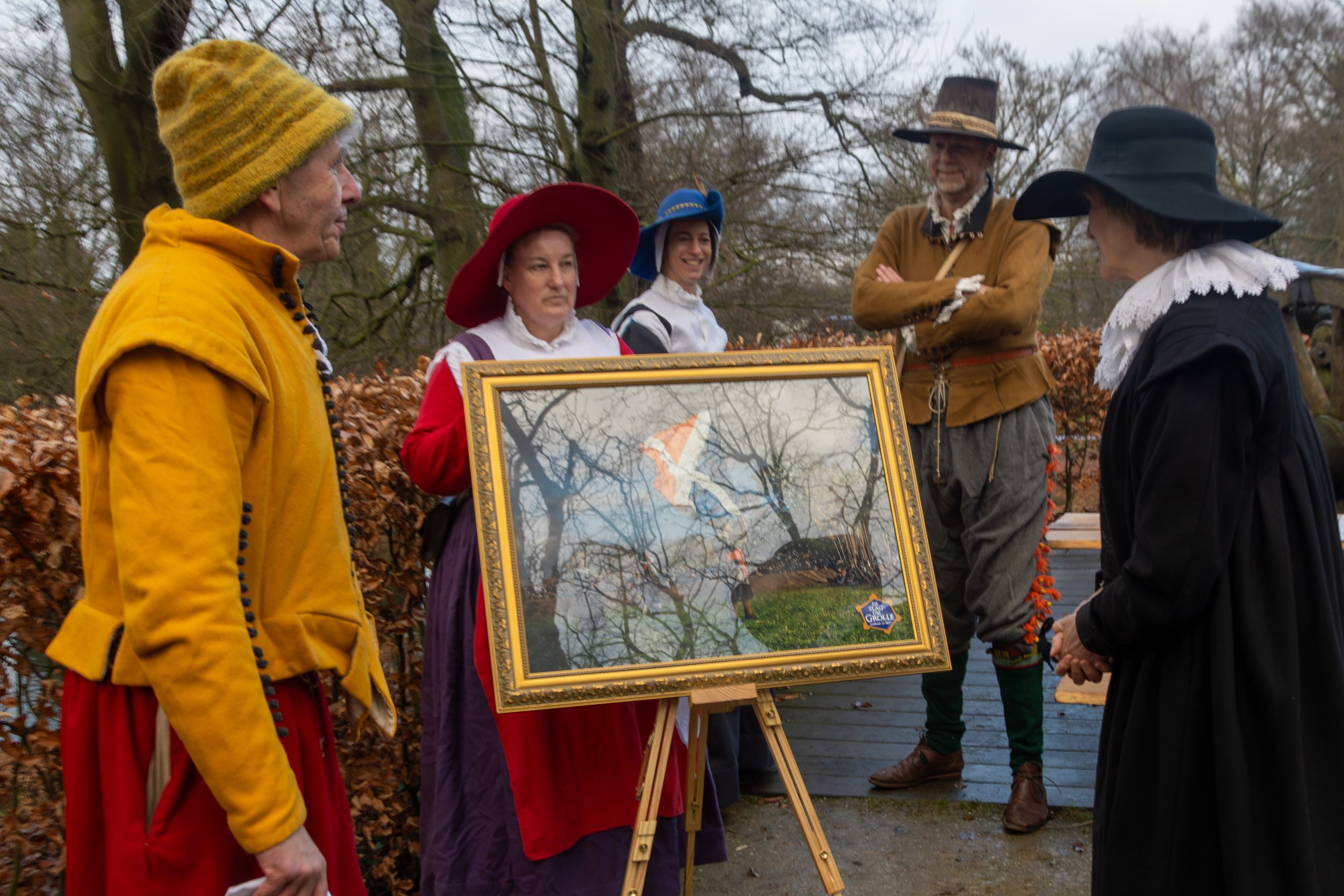 Het bestuur – Gert Stek, Godfried Nijs, Tristan Naber, Karina van den Mosselaar en Hilke Heezen – verraste haar met de titel én een ingelijste foto van het historische evenement. Volgens de organisatie staat de foto symbool voor de saamhorigheid, vrijwilligerskracht en de internationale uitstraling van de Slag om Grolle.