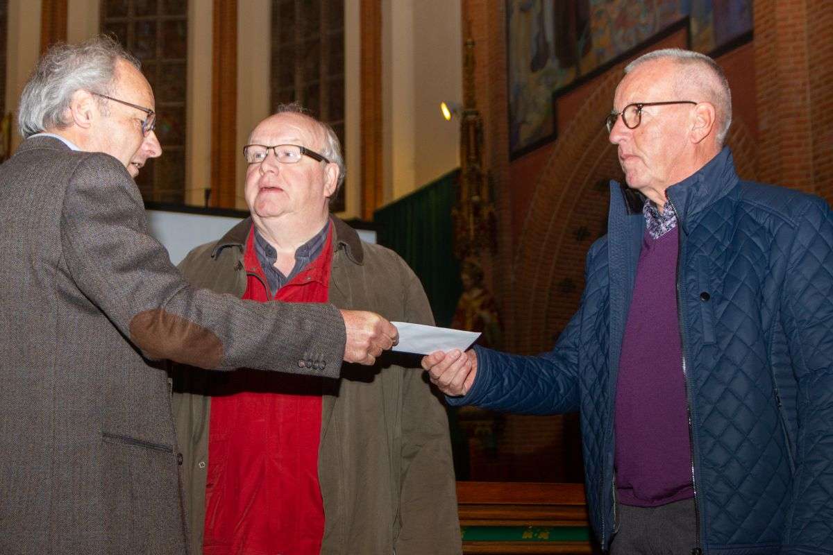 “Als voorzitter van de Beleidsadviesgroep Diaconie is het mij een eer om vandaag de Sint Maartenprijs uit te mogen reiken aan Gerard Bouwman en Jan Onnink, coördinatoren van de SOM oftewel Schuldhulpmaatje Groenlo. Schuldhulpmaatje is een initiatief van de gezamenlijke kerken in Nederland”, vertelde Peter Pothof.