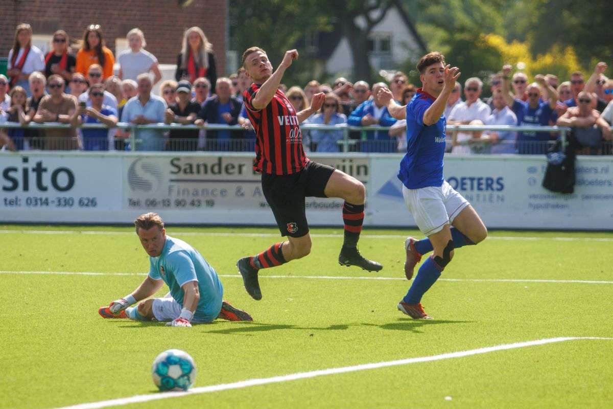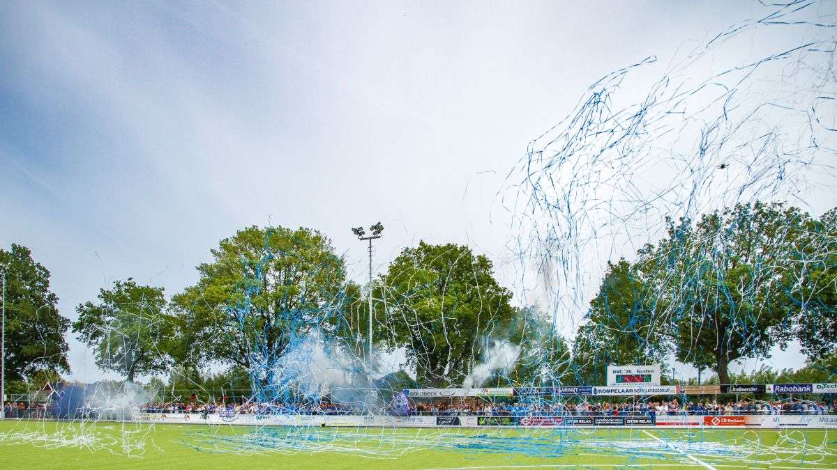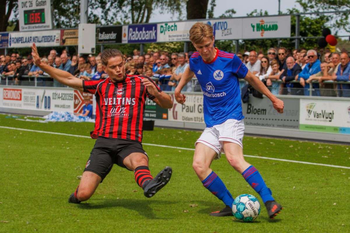 Grol voetbalde daarna goed verder en had de wedstrijd volledig onder controle. En toen gebeurde er waar DVC om bekend staat: scoren uit dode spelmomenten. Een hoekschop werd in de 16-meter met een halve omhaal verlengd en de bal belandde in het Groldoel: 1 – 1. DVC rook kansen en drong aan. Het publiek zweepte de ploegen nog eens op. Vlak voor rust tikte Wessel Baarslag een bal prachtig uit de hoek.