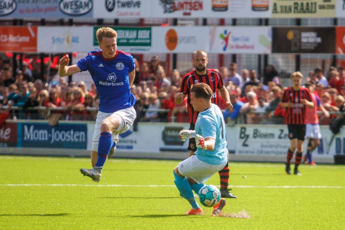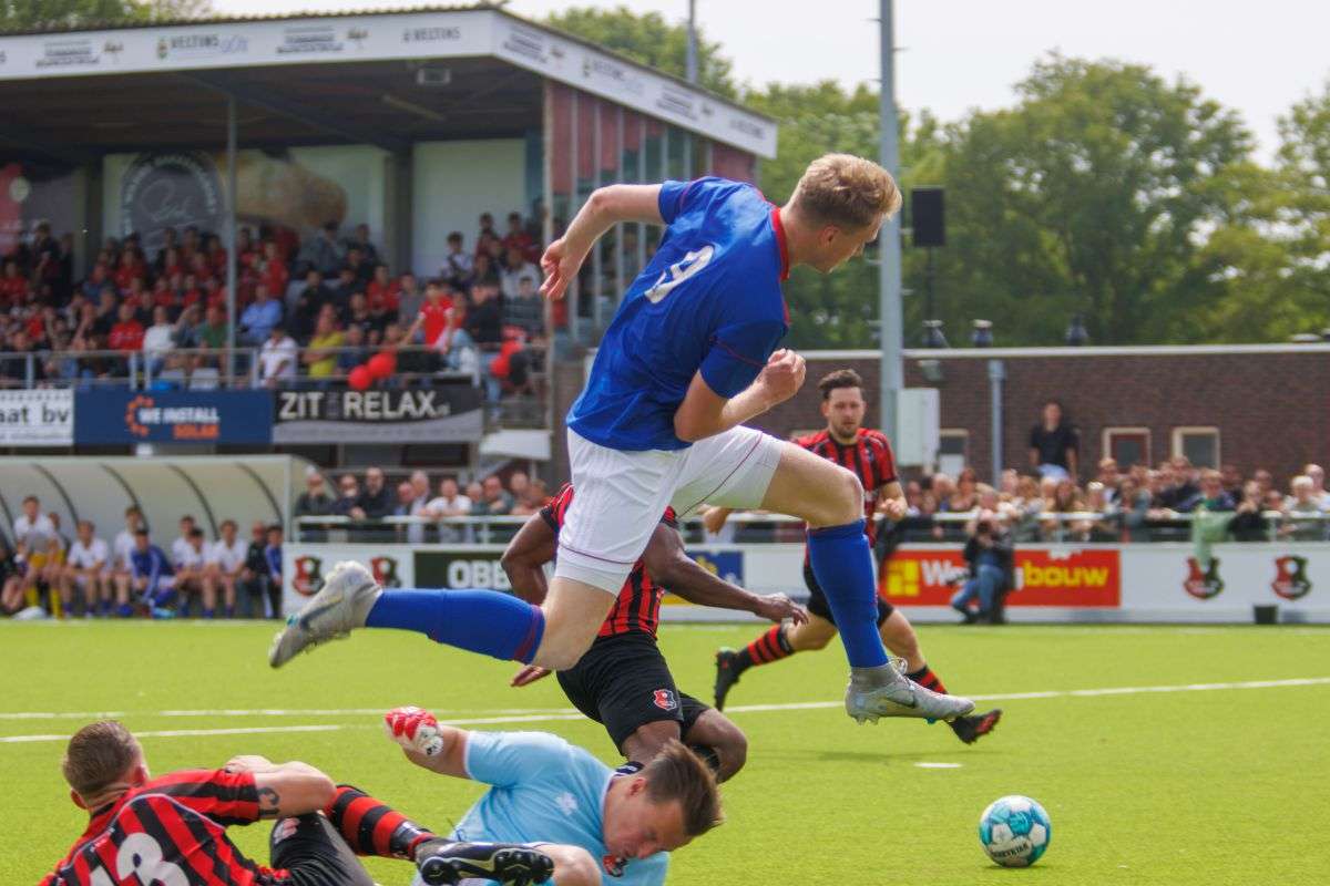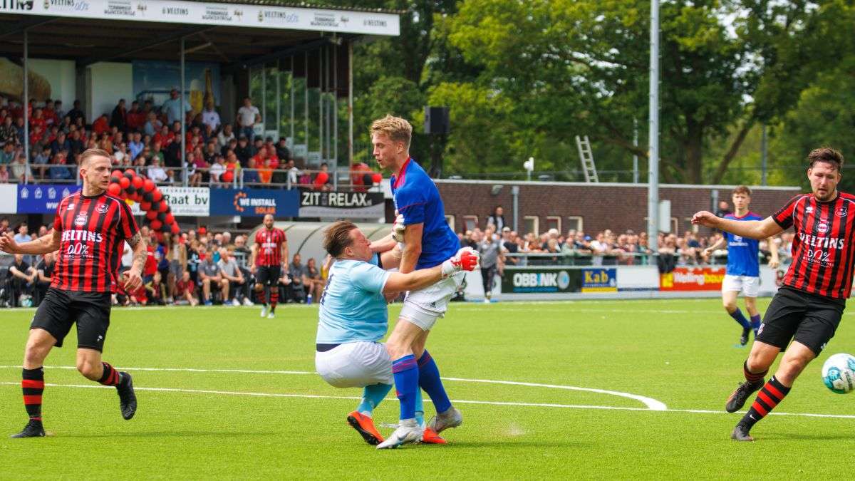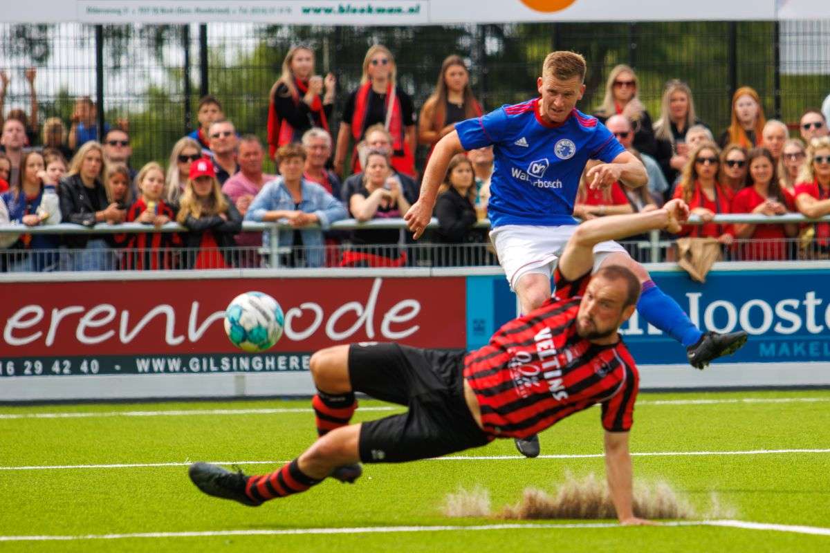 Grol voetbalde daarna goed verder en had de wedstrijd volledig onder controle. En toen gebeurde er waar DVC om bekend staat: scoren uit dode spelmomenten. Een hoekschop werd in de 16-meter met een halve omhaal verlengd en de bal belandde in het Groldoel: 1 – 1. DVC rook kansen en drong aan. Het publiek zweepte de ploegen nog eens op. Vlak voor rust tikte Wessel Baarslag een bal prachtig uit de hoek.