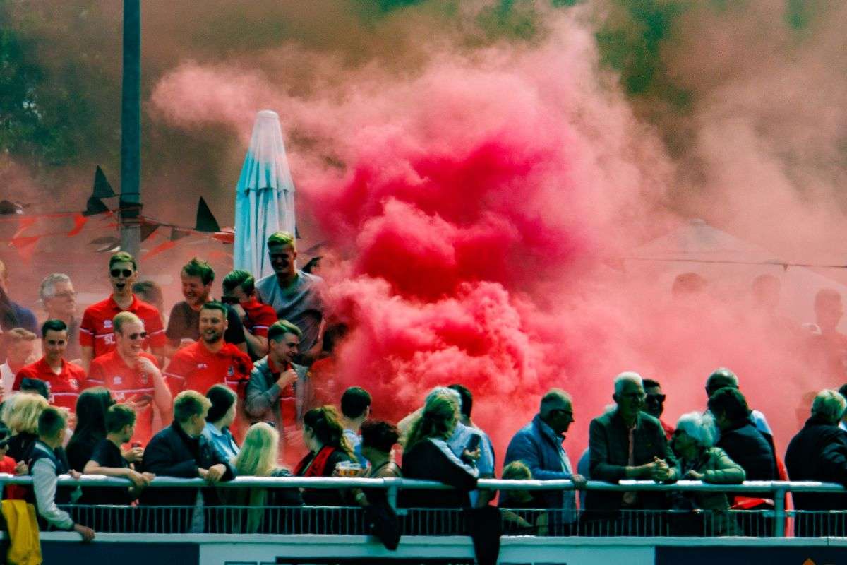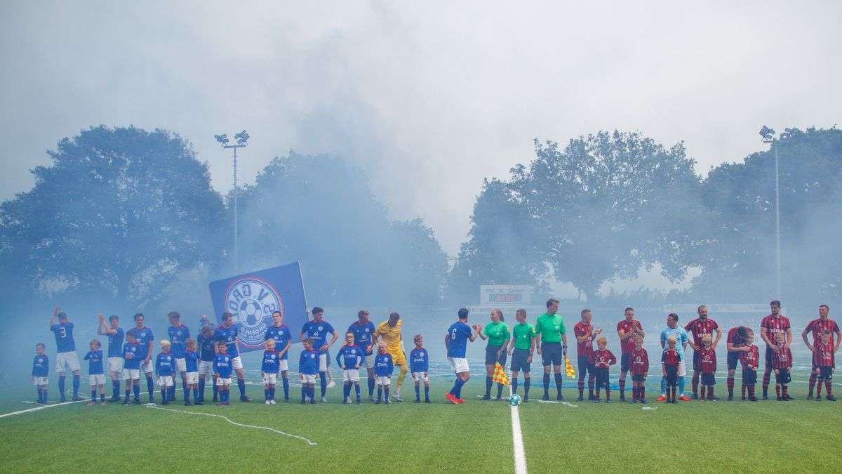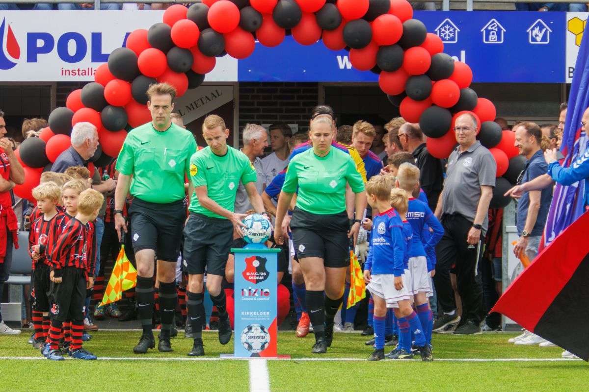 Naast de spelersbus vertrokken maar liefst zeven bussen met supporters vanaf Sportpark Den Elshof richting Didam. In Didam verzamelden zich in totaal ruim 2500 toeschouwers om de kraker tussen DVC ‘26 en Grol te bekijken. Bij opkomst van de teams kleurde het sportpark rood-zwart en blauw-wit en de opkomstmuziek werd overdondert door het vuurwerk.